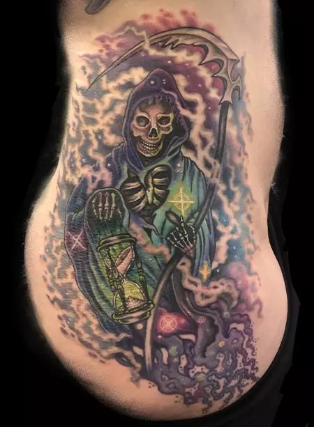 Angie Leaf began her life of art at a very early age by watching every Bob Ross episode that PBS would air. His show so inspired her that she started oil painting early on and hasn't stopped creating since. After earning her B.S. in Psychology and moving to Las Vegas, she began her body art career. She completed her apprenticeship at Golden Dragon Tattoo back in 2001, and she worked at several street shops before she opened her own custom tattoo studio in 2010. She called it Fallen Leaf Tattoos and Piercings. It was there that she created her art for thousands of Las Vegas locals and international clients until 2020, when she decided to step back, downsize, and realign her focus.