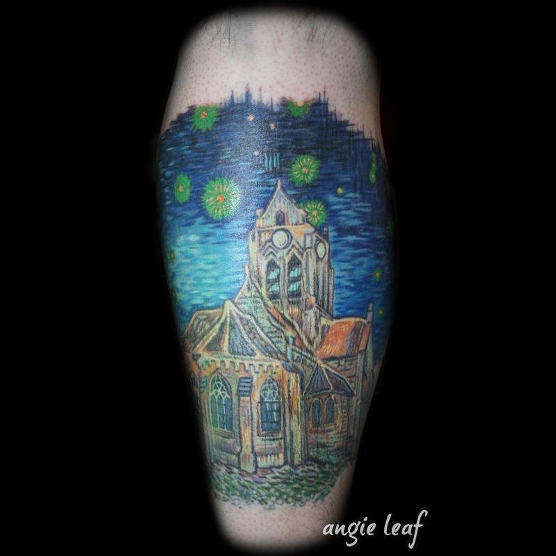 Angie Leaf began her life of art at a very early age by watching every Bob Ross episode that PBS would air. His show so inspired her that she started oil painting early on and hasn't stopped creating since. After earning her B.S. in Psychology and moving to Las Vegas, she began her body art career. She completed her apprenticeship at Golden Dragon Tattoo back in 2001, and she worked at several street shops before she opened her own custom tattoo studio in 2010. She called it Fallen Leaf Tattoos and Piercings. It was there that she created her art for thousands of Las Vegas locals and international clients until 2020, when she decided to step back, downsize, and realign her focus.